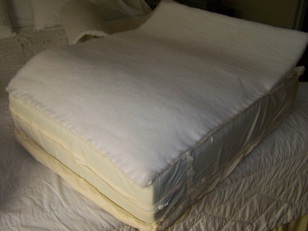 On a less serious note, the other thing that went wrong was the new living room furniture I bought last summer. The sofa and love seat (not a cheap set) had "down stuffed cushions". Well, the "down" turned out to be feathers, and they work through the fabric and poke you in the butt when you sit down. Not to mention feathers all over the living room. I finally pulled the covers off and encased the inner cushion and feathers in large plastic garbage bags. You can imagine how uncomfortable those were to sit on, besides the fact the covers wouldn't stay on straight due to the slick plastic underneath. And every time someone sat on them, the air would rush out of the bags and make embarrassing sounds. I finally decided I had to do something, so I bought a roll of some 1-inch thick stuff called Nu-Foam, which is a woven fabric that is used in cushions and such, and supposed to be better than foam. To fit inside the covers, it had to be sharp around the edges, yet puffier through the seat area where the feather filling was. That meant cut it to fit, then hand stitch it to the inner lining. A time consuming, back killing job.
