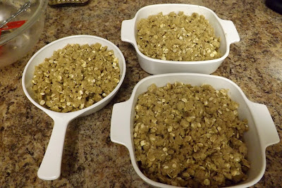 What to do? I don't need any more zucchini bread. I have enough zucchini relish to last me a lifetime. I can hide the smaller ones by grating them into my coleslaw, but four pounds? I think not! I know, let's try Zucchini "Apple" Crisp! It has rave reviews on Taste of Home, and I trust most of the recipes they publish, so I'm game!